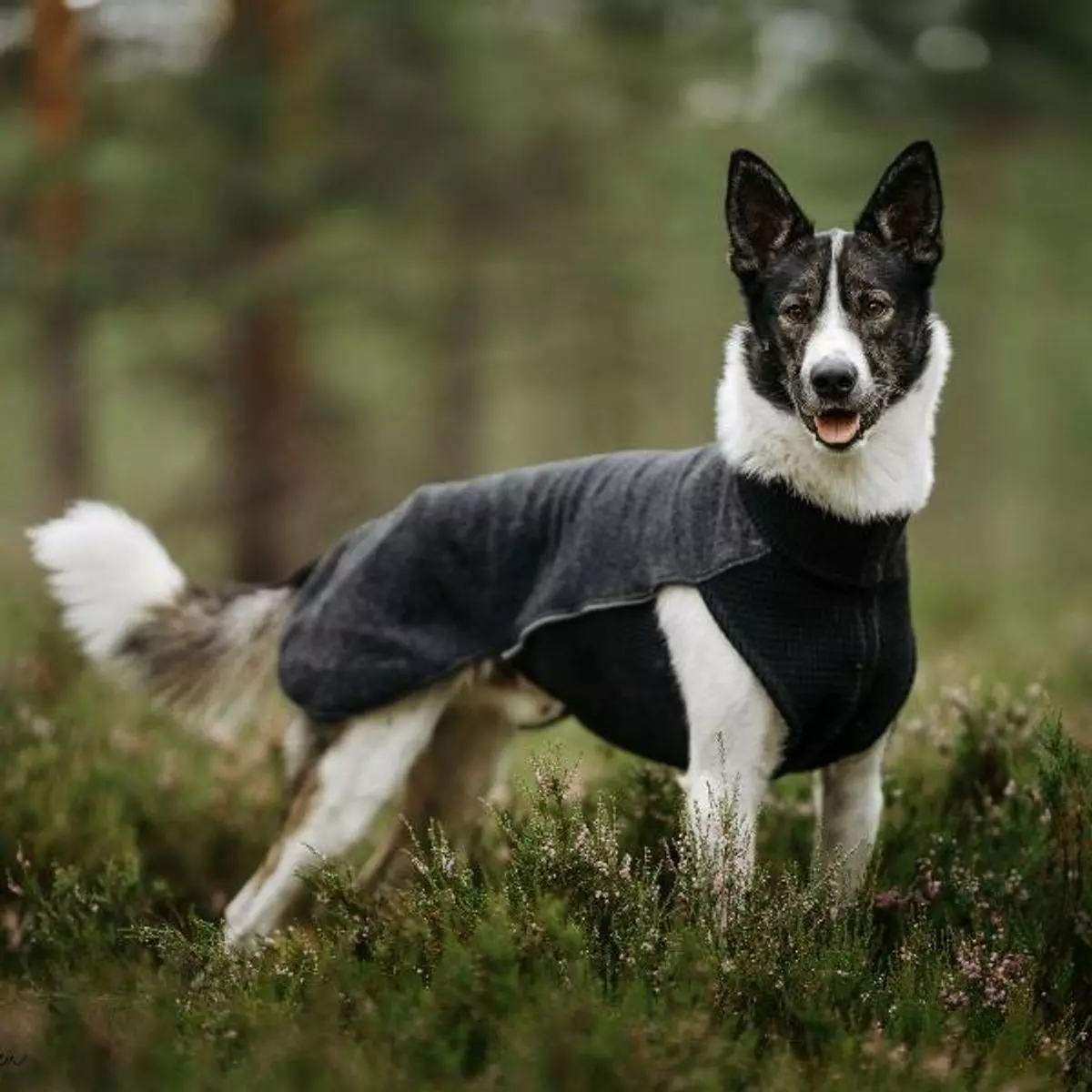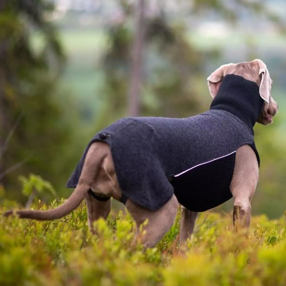 Tettsittende slik at det er godt egnet under regn-/vinddekken eller markeringsdekken. Bakbein-strikker.