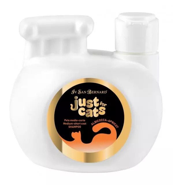 Aprikos sjampo er en delikat sjampo for vedlikehold av kattepels, hvor kombinasjon av Ris og Hveteproteiner styrker pelsen.