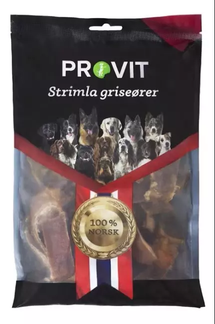 Alle produktene er produsert i Norge av norske råvarer. PROVIT Strimla griseører er produsert av dyr godkjent for norsk matproduksjon til mennesker. Alle råvarer i PROVIT Strimla griseører er derfor av høyeste kvalitet.